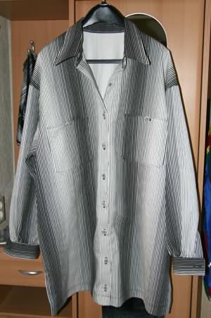 Longhemd nach 'neue Mode' S21811 - ich nenne es das '15 Sekunden Hemd' nicht weils so schnell genäht war - eher im Gegenteil - aber wers schafft länger als 15 Sekunden auf den irren Stoff zu schauen ist echt gut! Geiles Teil! *find* |